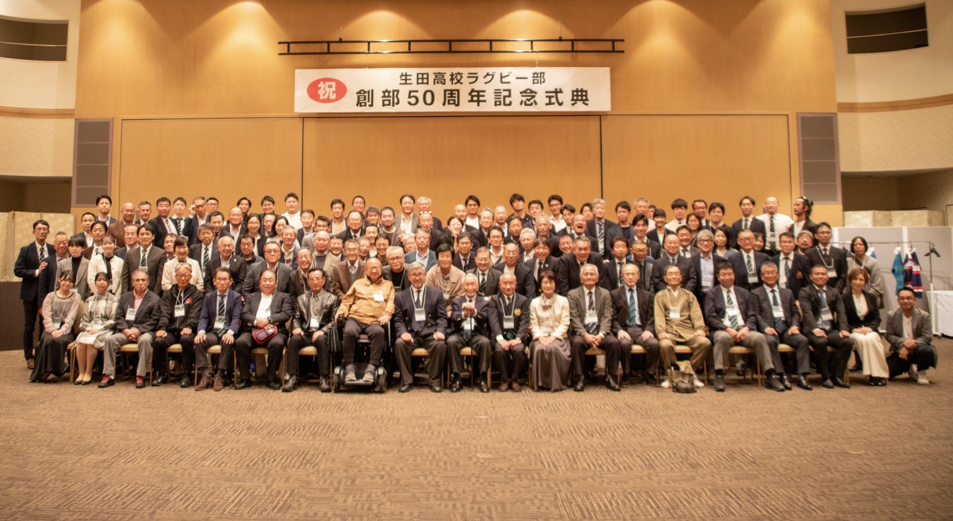 11月9日(土)、12時からホテルARU KSP(高津区坂戸)で「生田高等学校ラグビー部 創部50周年記念式典」が開催され、ラグビー部の歴代指導者、OB、OG総勢130人が参加して盛大な式典が開催されました。
