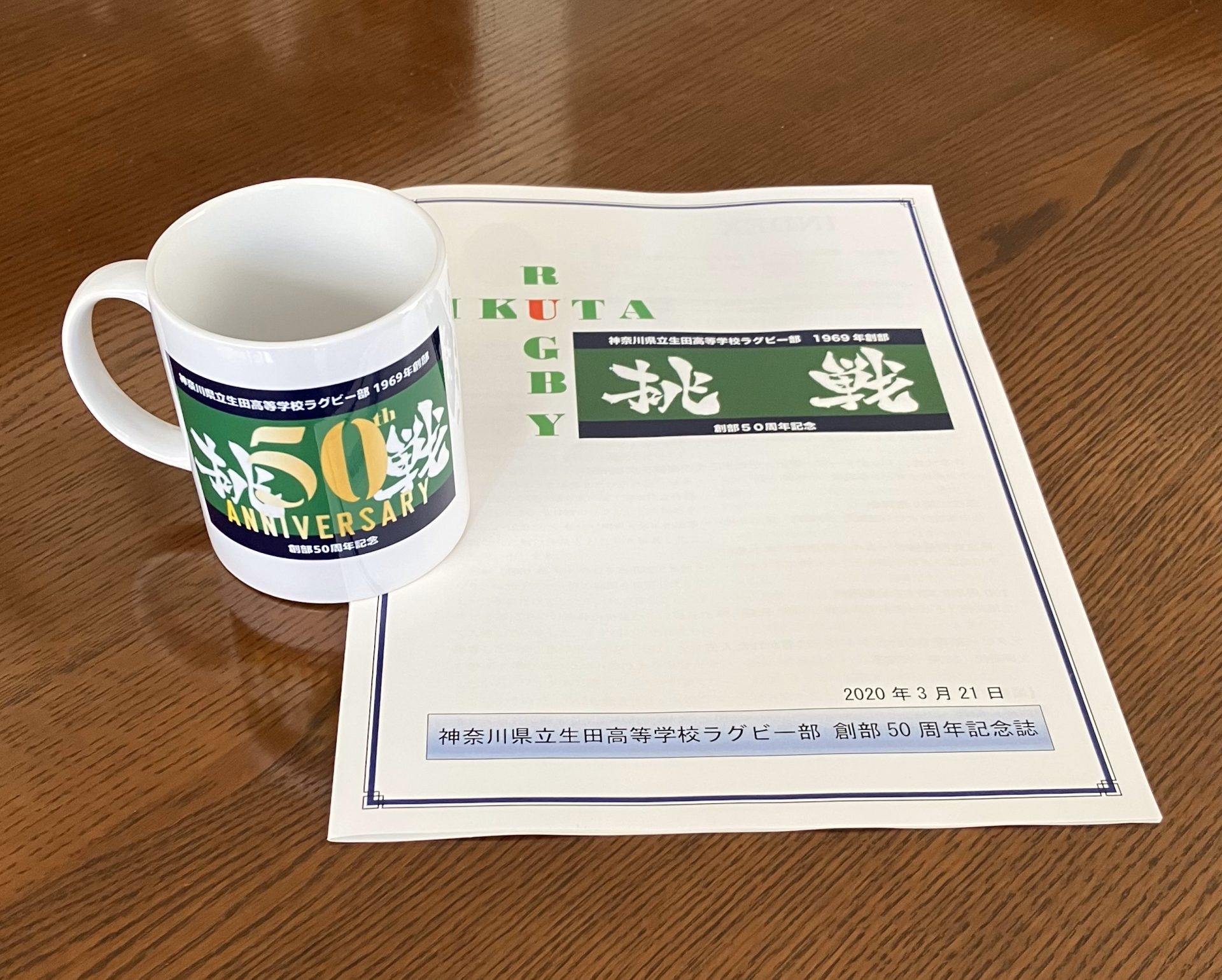 参加者にはOB会から寄贈した応援の横断幕をモチーフに50th ANNIVERSARYをデザインしたマグカップと歴代指導者、OBの寄稿文を掲載した記念誌が配布されました。
